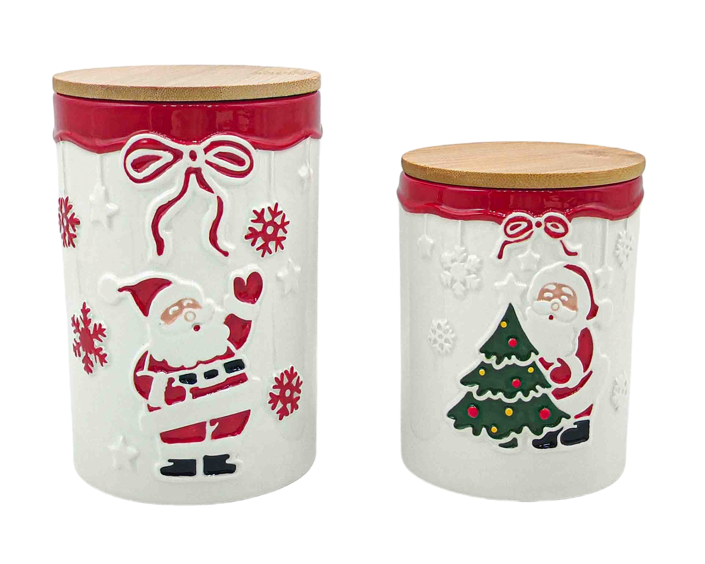 Баночка для рождественского мужа с бантом - керамическая банка для праздничного хранения с классическими рождественскими элементами